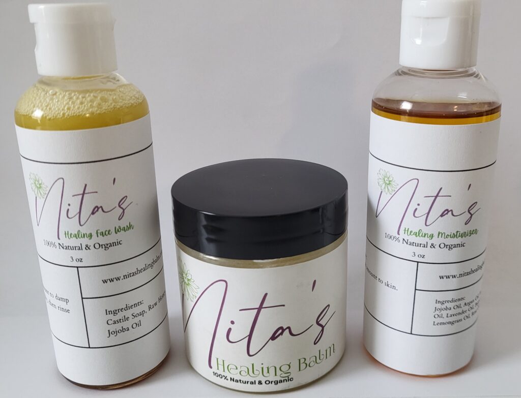 After years of research, testing, and heartfelt conversations, Nita’s Healing Balm was just the beginning. Today, I’m proud to offer a full line of natural, handcrafted products— all made with love and intention.